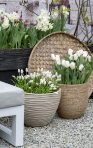 Ein Balkon oder eine Terrasse bietet viele Möglichkeiten für ein Blumenfest. Frühlingsblumenzwiebeln eignen sich hervorragend für Töpfe, Kübel oder sogar Eimer und Körbe. Außerdem sind Blumenzwiebeln in Töpfen flexibel: Sie können sie setzen, wo Sie möchten. Stellen Sie sie neben der Eingangstür, auf eine Brüstung oder in einer Gruppe auf. Wenn die Blumenzwiebeln aufgehen, schaffen sie sofort eine schöne Frühlingsatmosphäre.